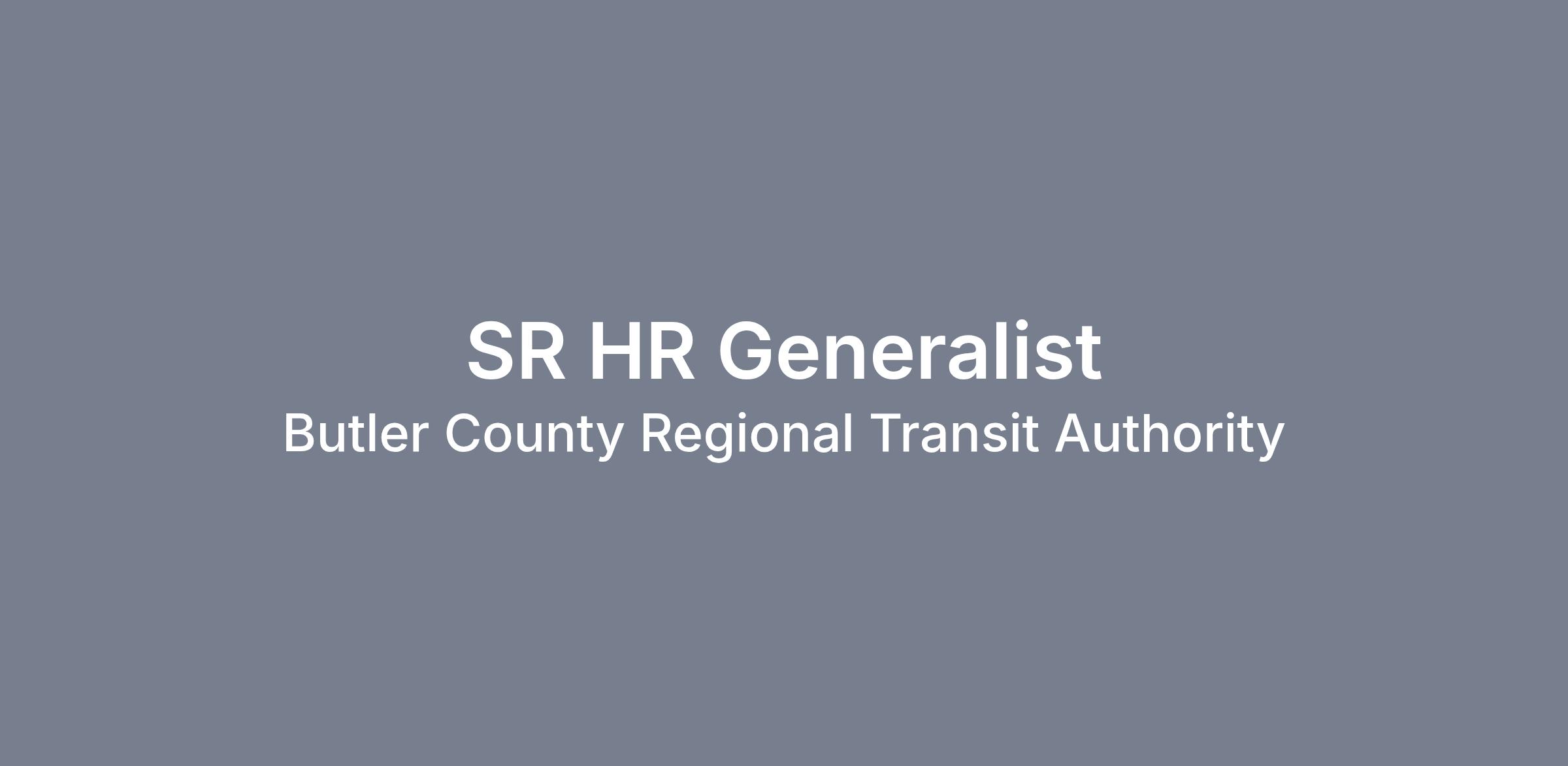 The SR HR Generalist will act as the frontline HR representative for all employees at BCRTA. This position will be responsible for providing applicants and employees with excellent customer service and problem resolution while always maintaining strict confidentiality of information. Duties include but are not limited to communication with all employees regarding benefits, compensation, handbook compliance, attendance, FMLA, etc., filing, tracking monthly HR statistics, compliance with EEO requirements, accident file audits, new hire onboarding and drug and alcohol program compliance. ESSENTIAL JOB FUNCTIONS:- Maintain, secure, and manage confidential HR records and data, ensuring accuracy, compliance, and timely updates across all systems.