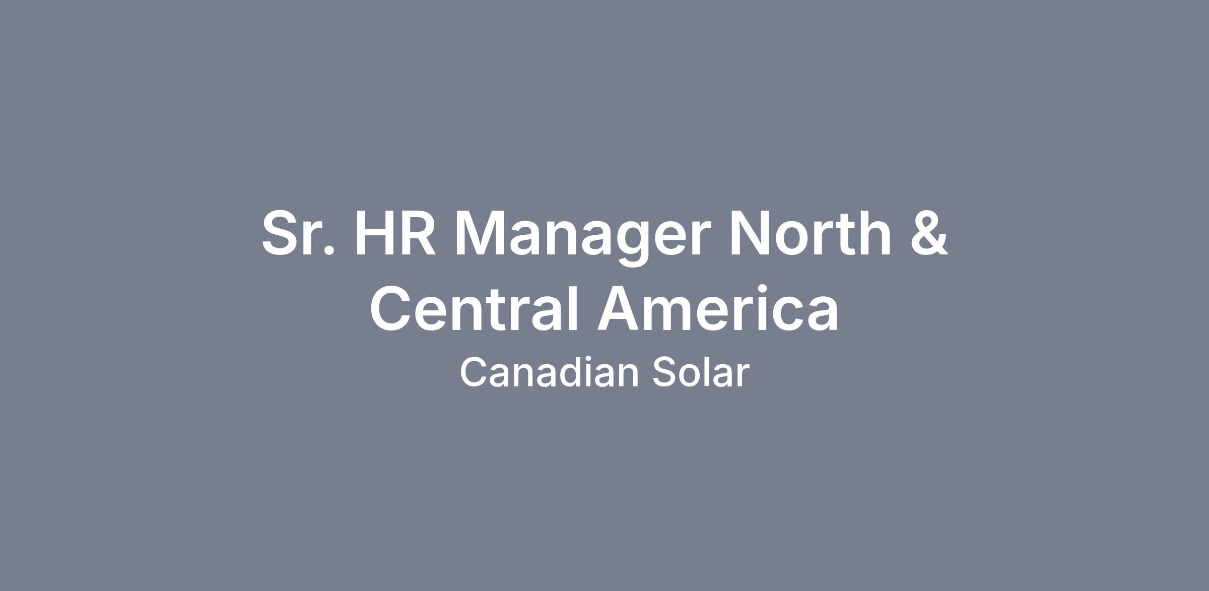 Job Title: Sr. HR Manager North & Central America