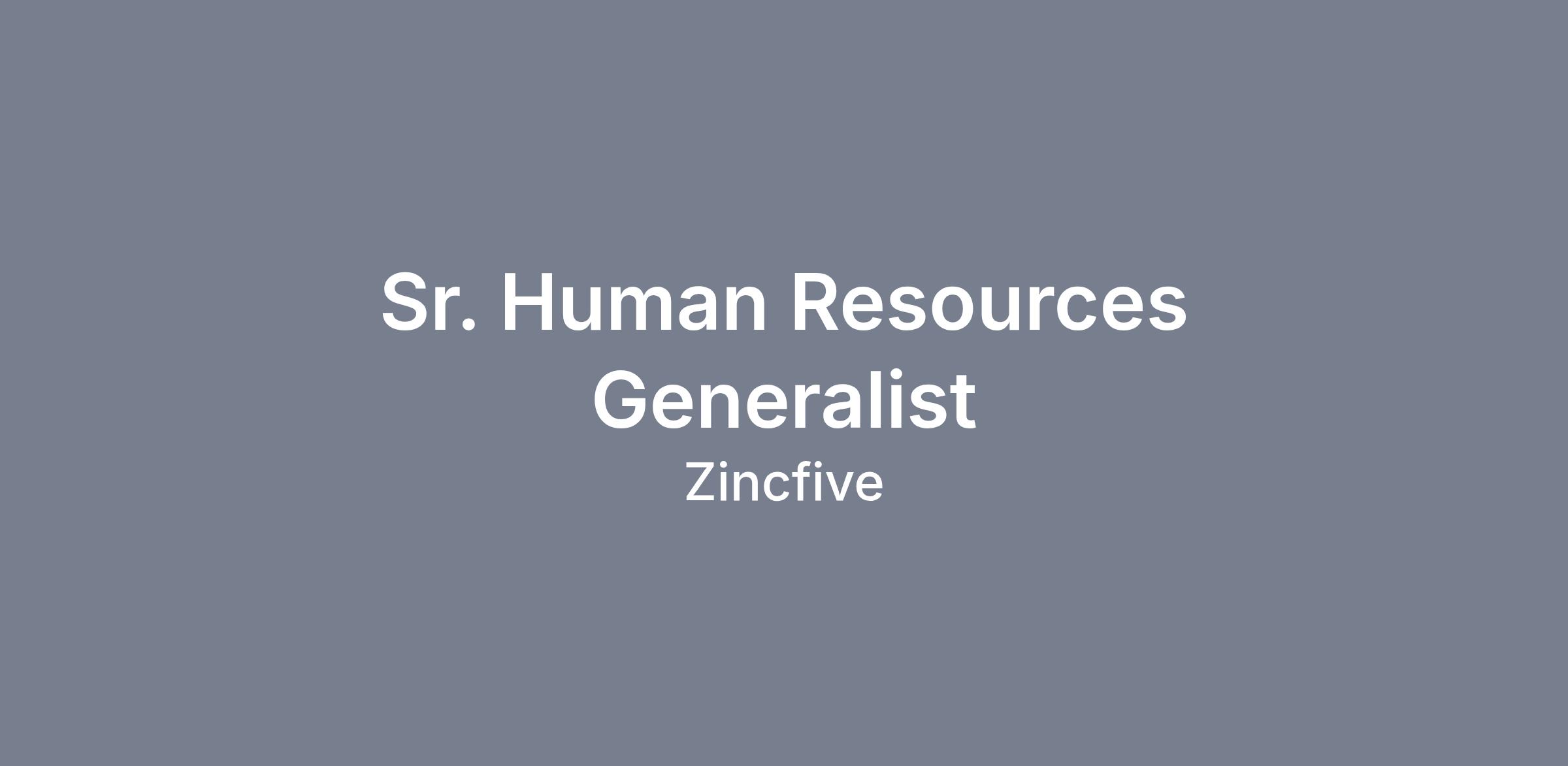 Sr. Human Resources Generalist Job Duties: