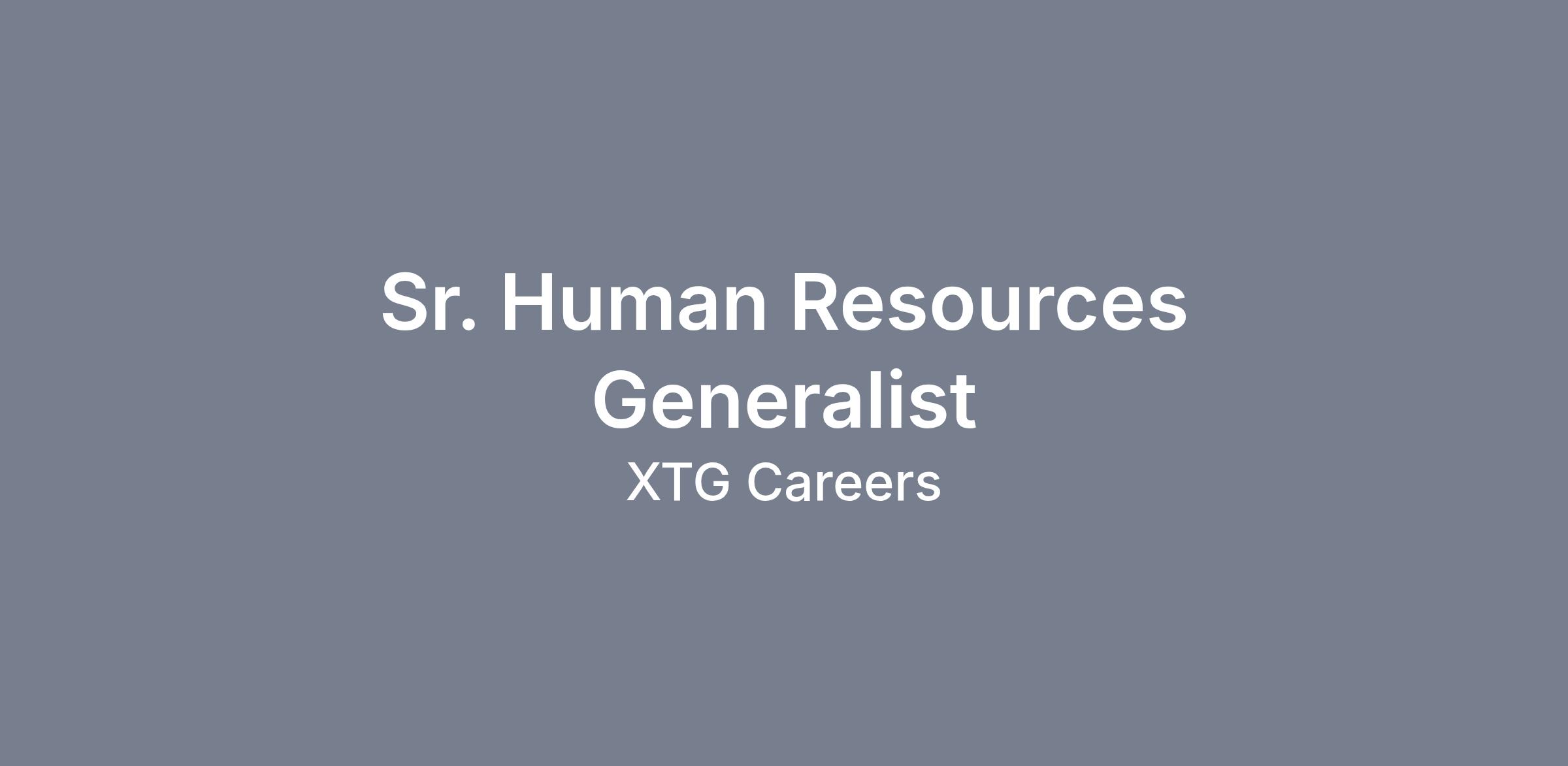 The Sr. Human Resources Generalist is accountable for providing support to assigned group(s) within XTG in the areas of offer approvals/onboarding, employee relations, legal compliance, performance management, and employee and management coaching.