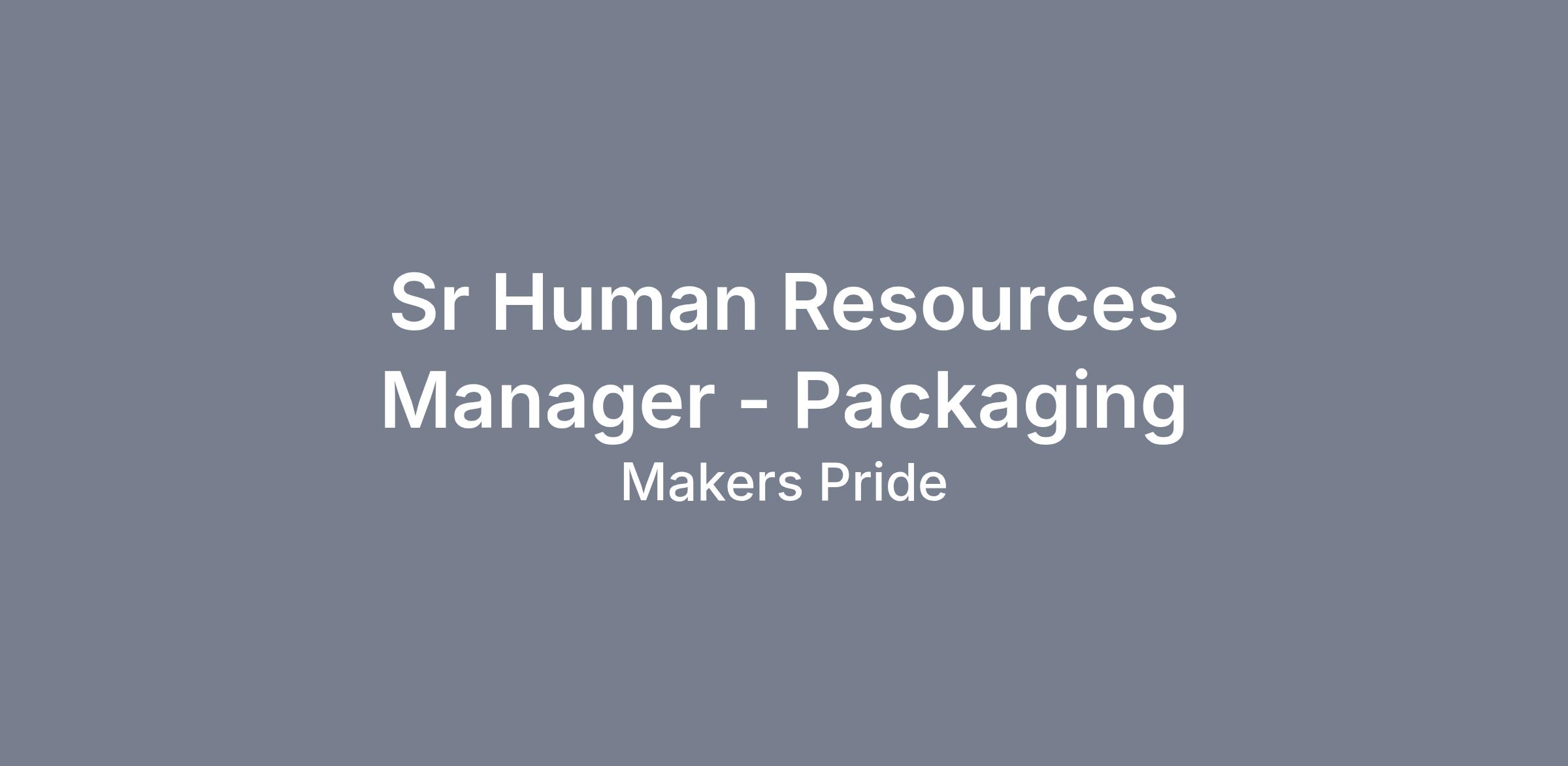 Senior Human Resources Manager – MultiSite (Packaging Platform)