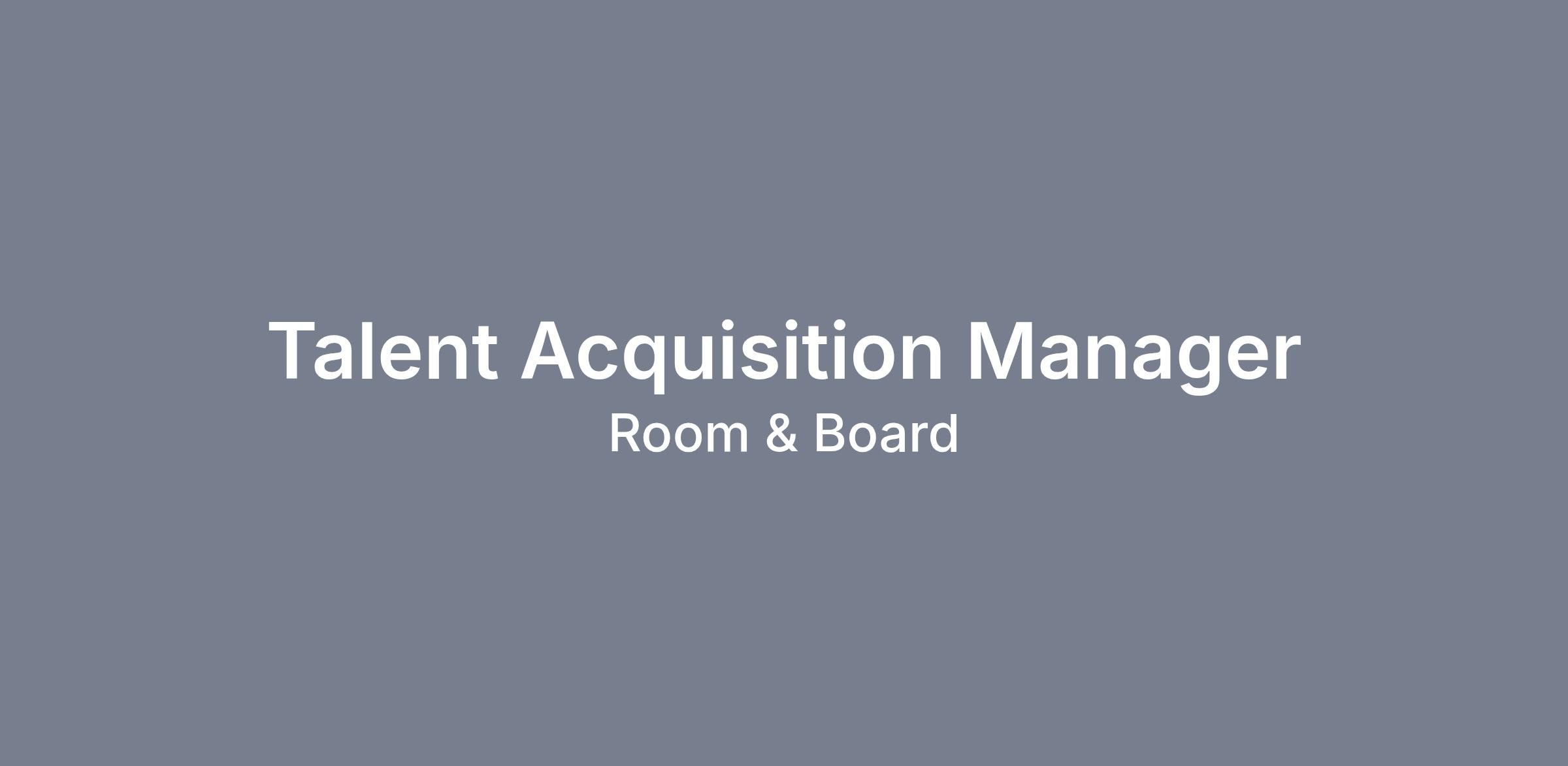 We are successful when we have the right people in the right roles. Our Manager of Talent Acquisition ensures we hire individuals who are both qualified for the work at hand and uniquely suited to our culture. When we attract and select the right talent, our people thrive, our teams perform at a high level, and Room & Board continues to grow and deliver exceptional customer experiences.