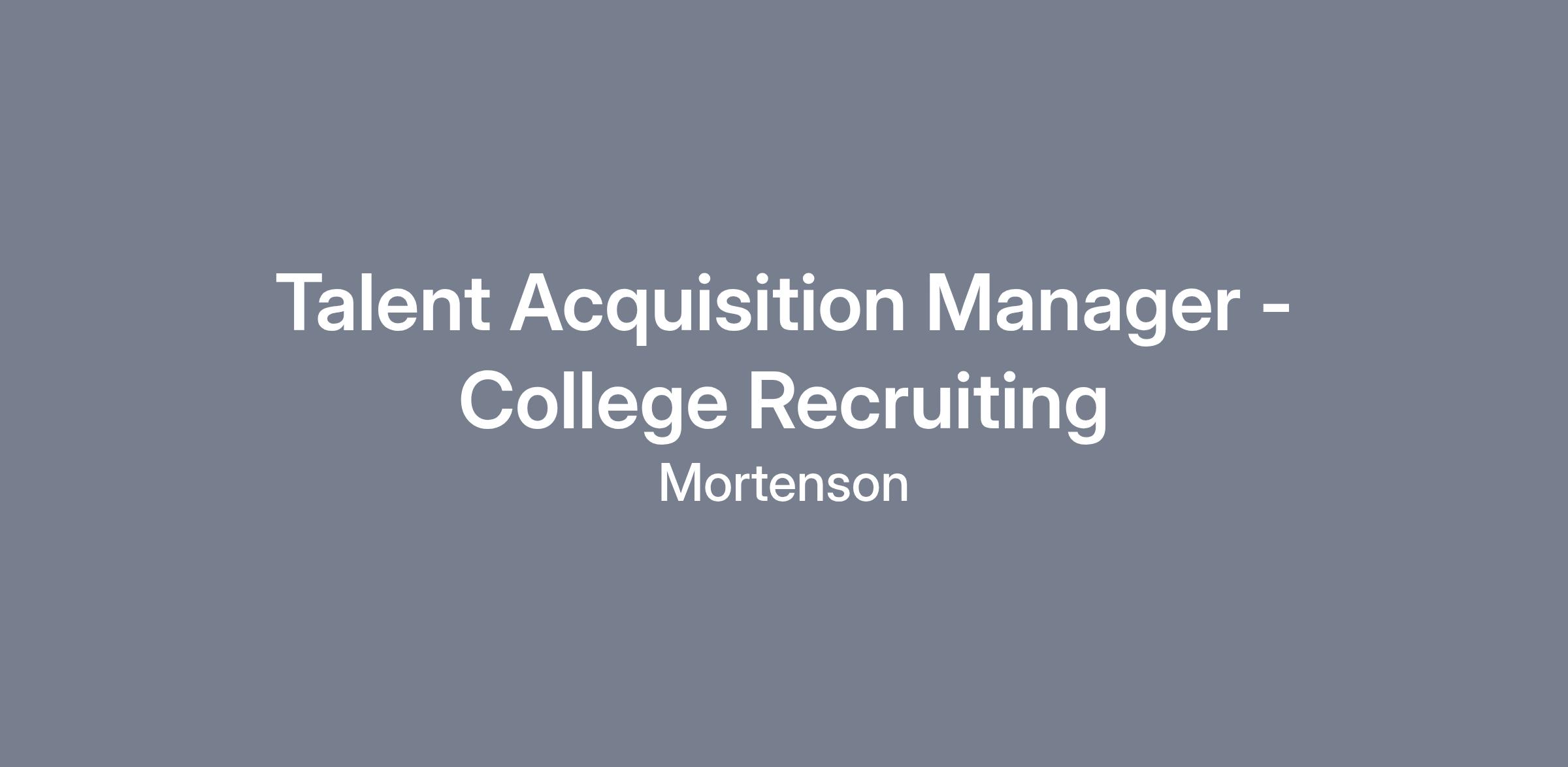 As the Talent Acquisition Manager – College Recruiting at Mortenson, you will serve as a key leader who drives business strategy and champions company growth by building equitable, diverse, and high‑performing early‑career talent pipelines. This role oversees the entire college recruiting function (including our internship programming), encompassing both internal and external execution of campus strategy. In addition, this role also oversees the national diversity partnerships and recruiting events that take place throughout the calendar year.