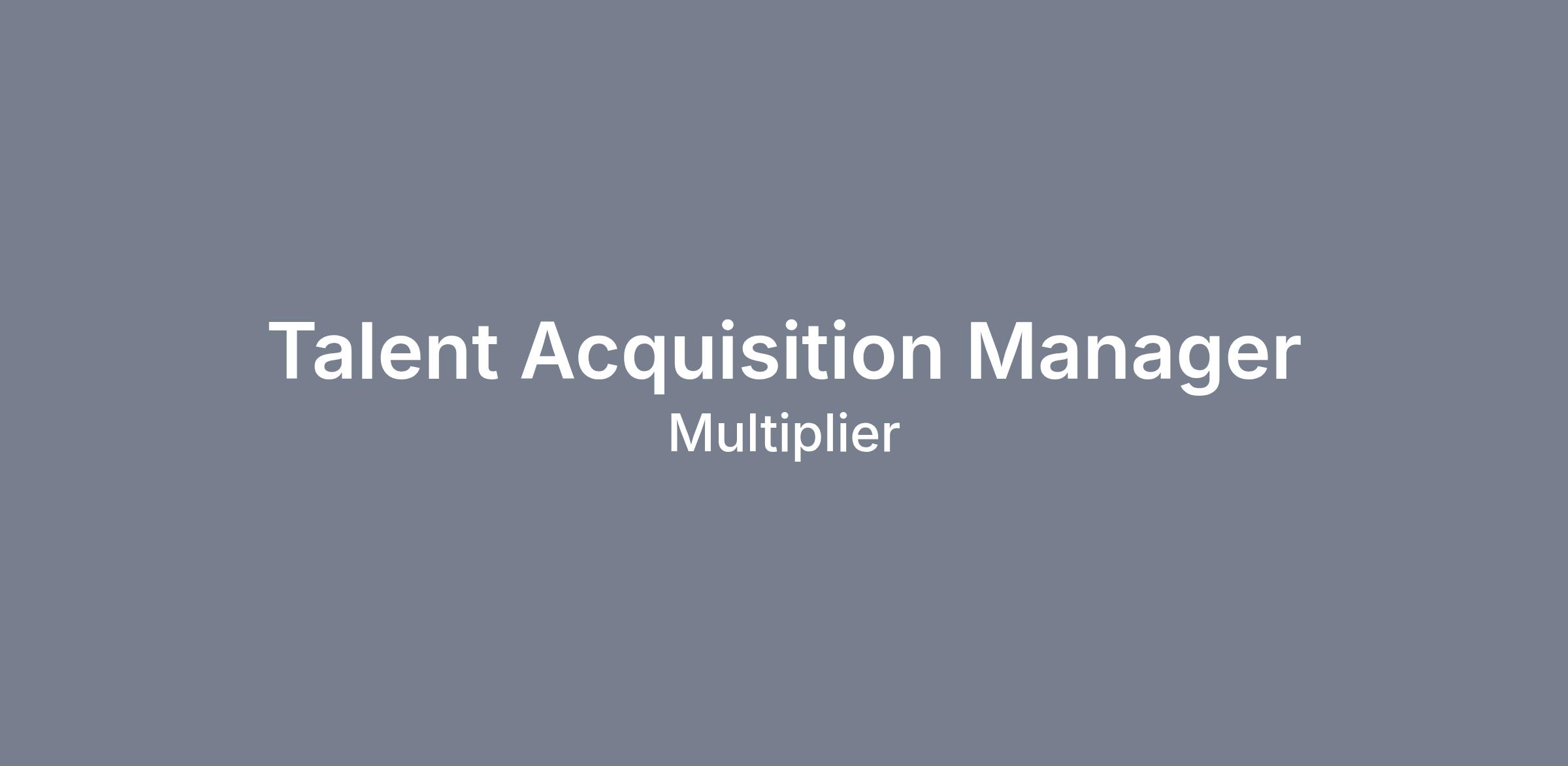Multiplier is a high-performance, rapidly growing organization. To support this growth, we are seeking a colleague to join our human resources team in the position of Talent Acquisition Manager and we are poised to hire immediately.