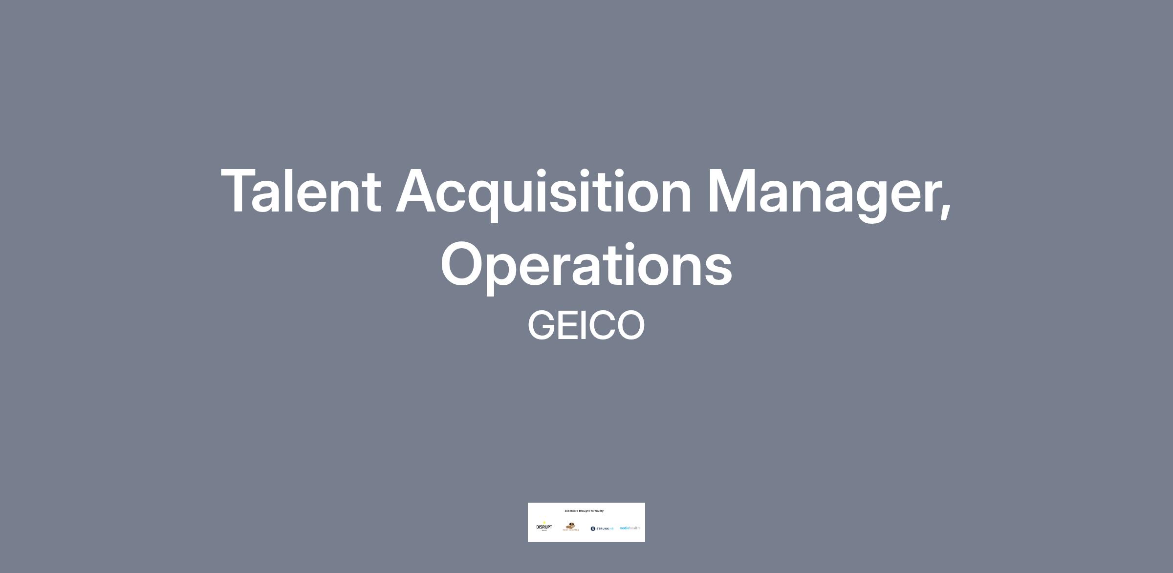 GEICO Talent Acquisition Department is seeking a driven, experienced, and entrepreneurial minded leader to join our team as the Manager of Talent Acquisition, Operations. This is a rewarding and challenging opportunity to lead a team of recruiters & talent acquisition specialists to meet our company recruiting goals. The manager will work closely with various business units to drive our recruiting strategy throughout the organization & will be committed to recruiting top talent in various positions for the company.