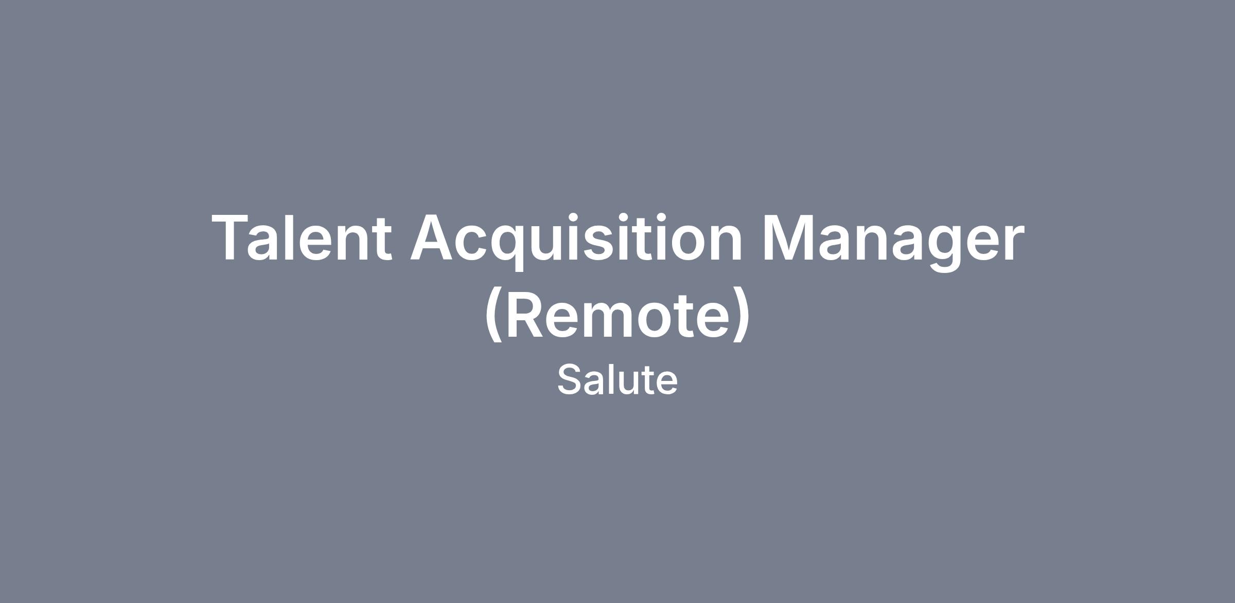 Talent Acquisition Manager (Remote)