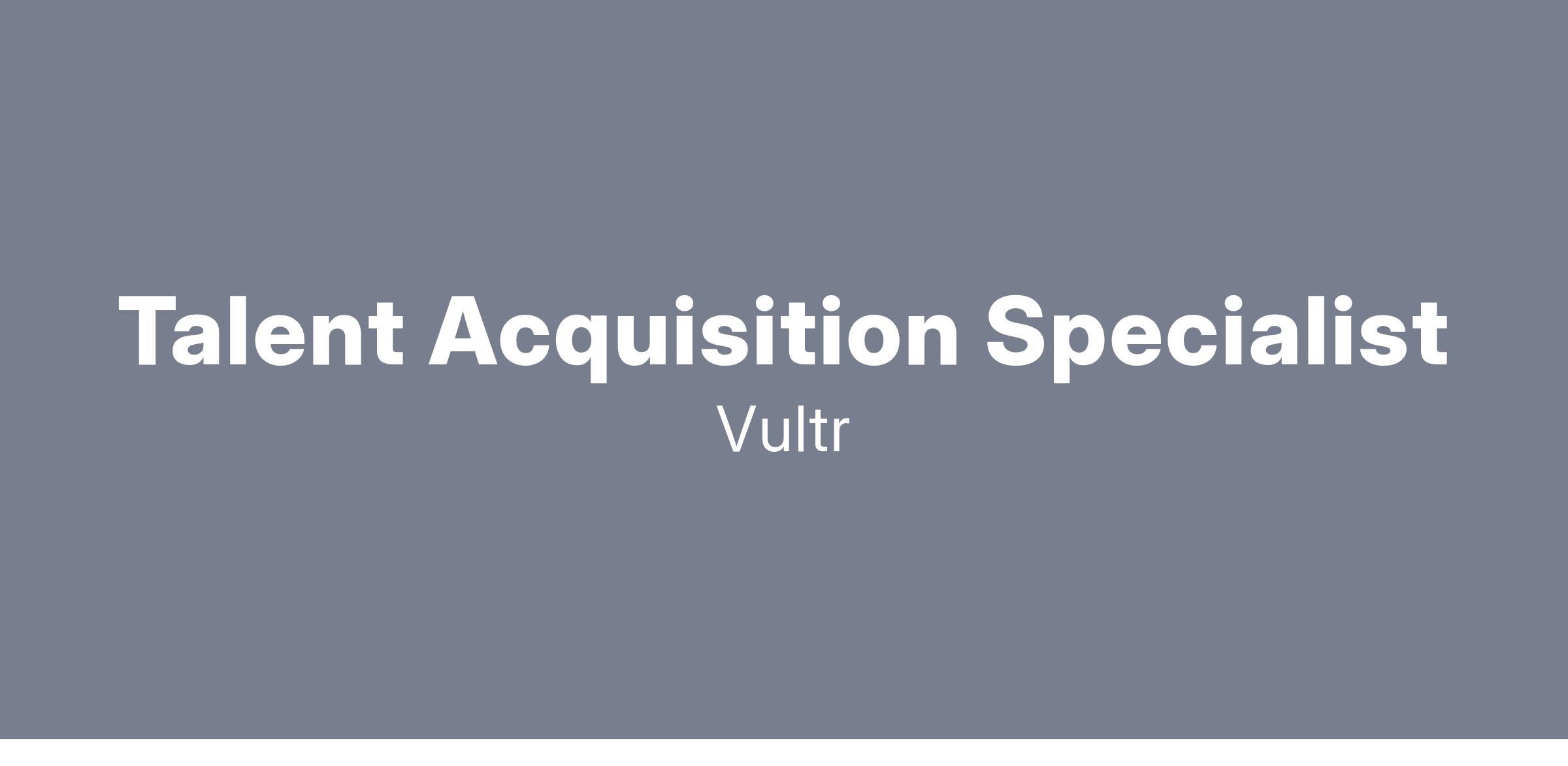 The People Operations team is a central pillar of our growth strategy, and we are looking for a new Talent Acquisition Specialist to bring in top talent to support our company with its next phase of growth. You’ll work with a positive and uplifting team to take our company to new heights. You are the future of Vultr. Come fly with us!