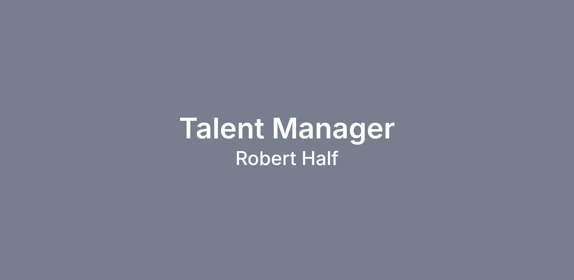 Our Talent Managers work in a team environment and have responsibility for negotiating and developing business with new and current clients. Talent Managers market our services via telephone, video and by conducting in-person meetings with hiring managers and decision-makers in accounting and finance departments. Additional responsibilities include: recruiting, interviewing and matching highly skilled Technology professionals with clients’ projects, contract assignments and contract to full-time opportunities; managing ongoing engagements to deliver outstanding customer service to both clients and candidates; providing ongoing communication and career guidance to candidates; and participating in local trade association and networking events to increase Robert Half’s presence in the local business community.