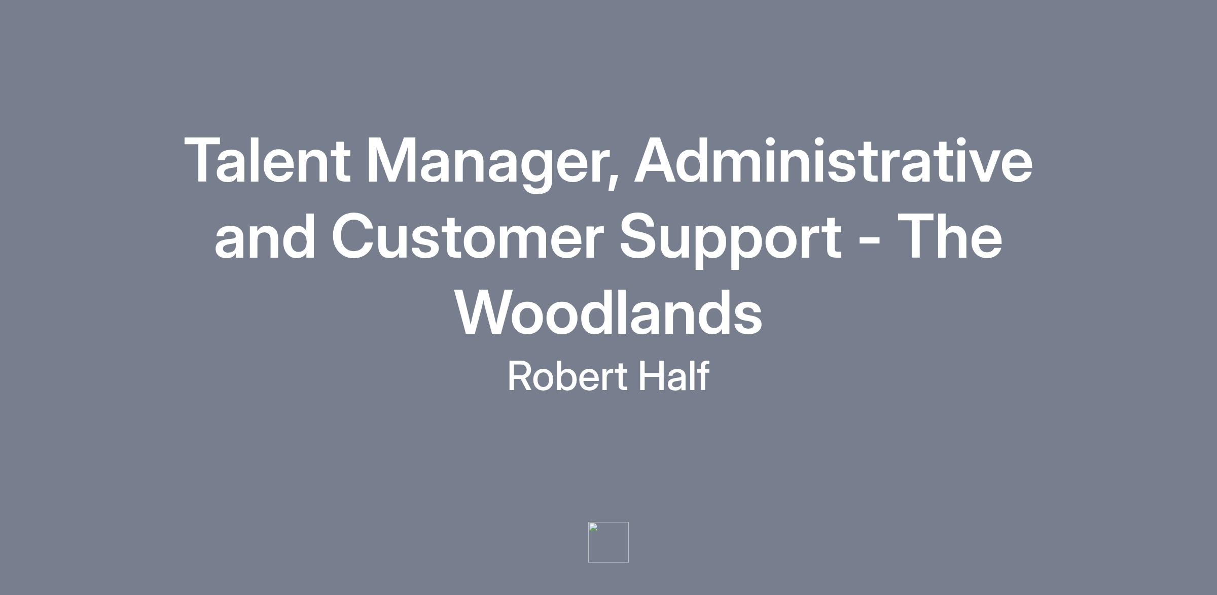 Talent Manager, Administrative and Customer Support - The WoodlandsLOCATION