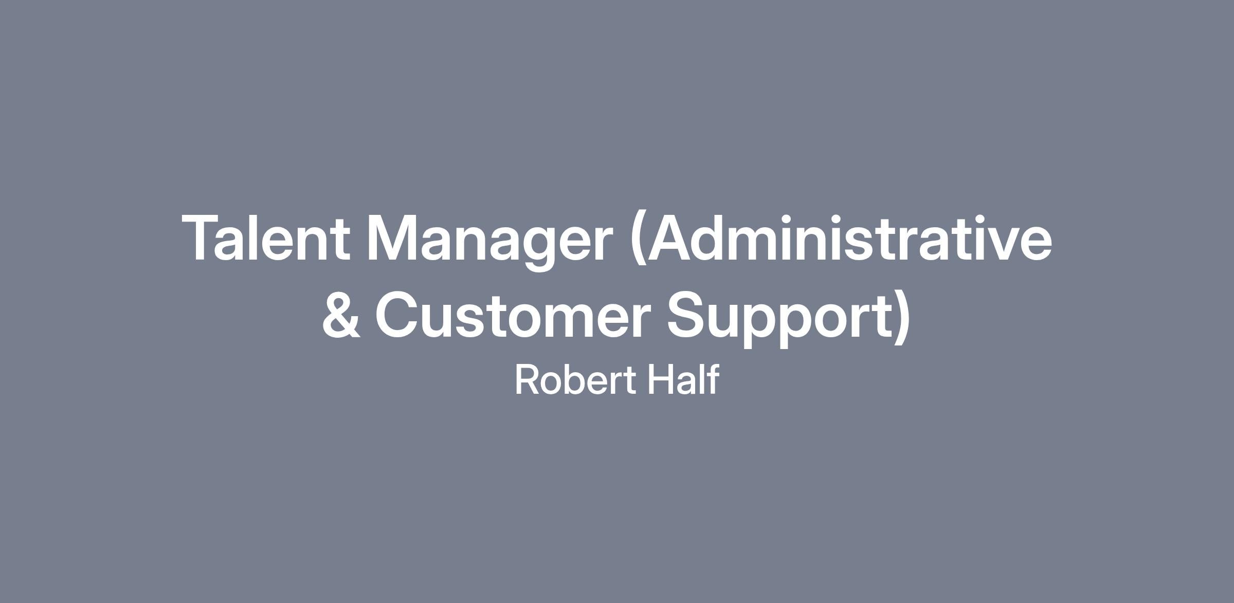 Talent Manager (Administrative & Customer Support)LOCATION