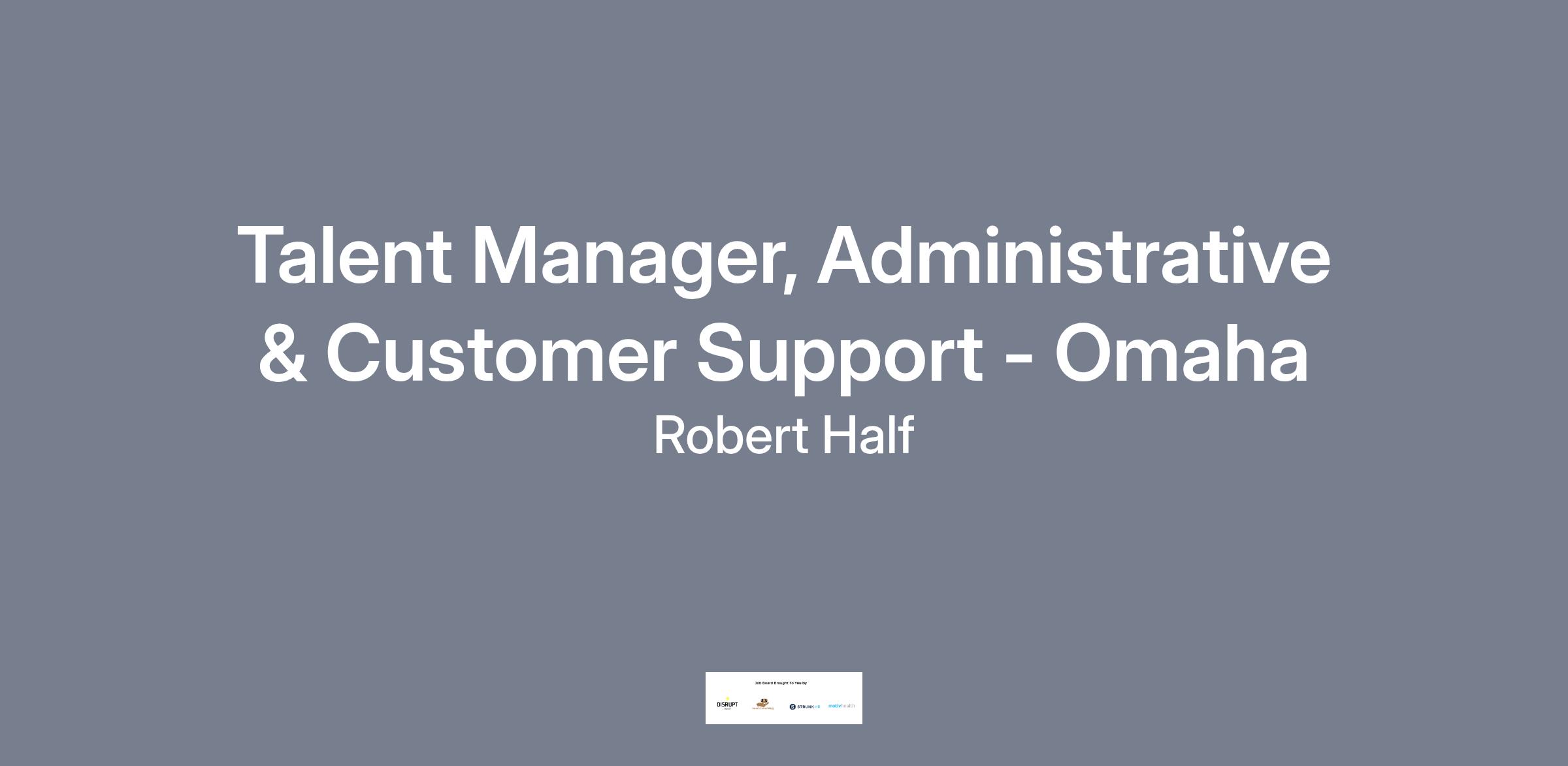 Talent Manager, Administrative & Customer Support - OmahaLOCATION