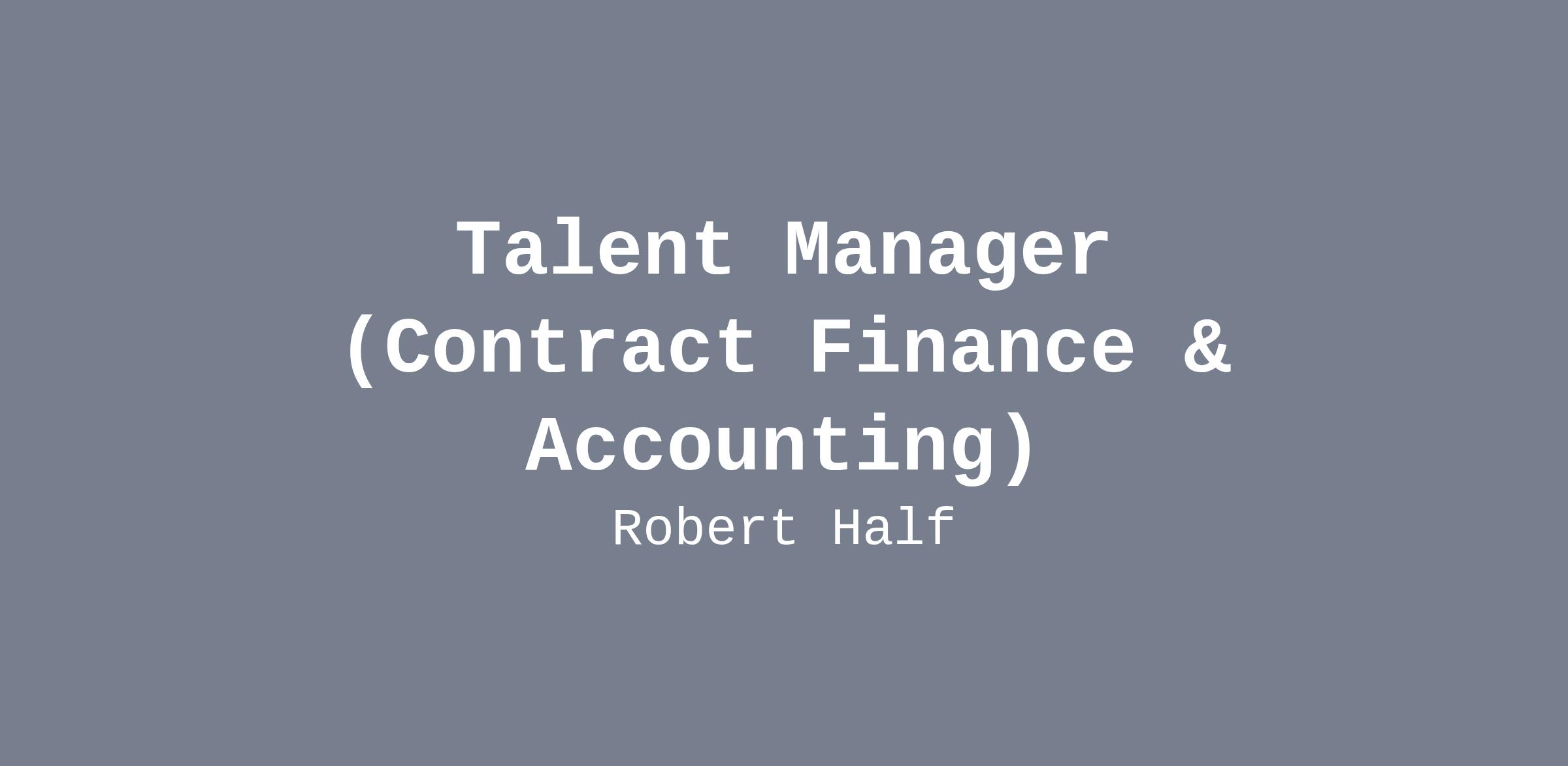 Talent Manager (Contract Finance & Accounting)LOCATION