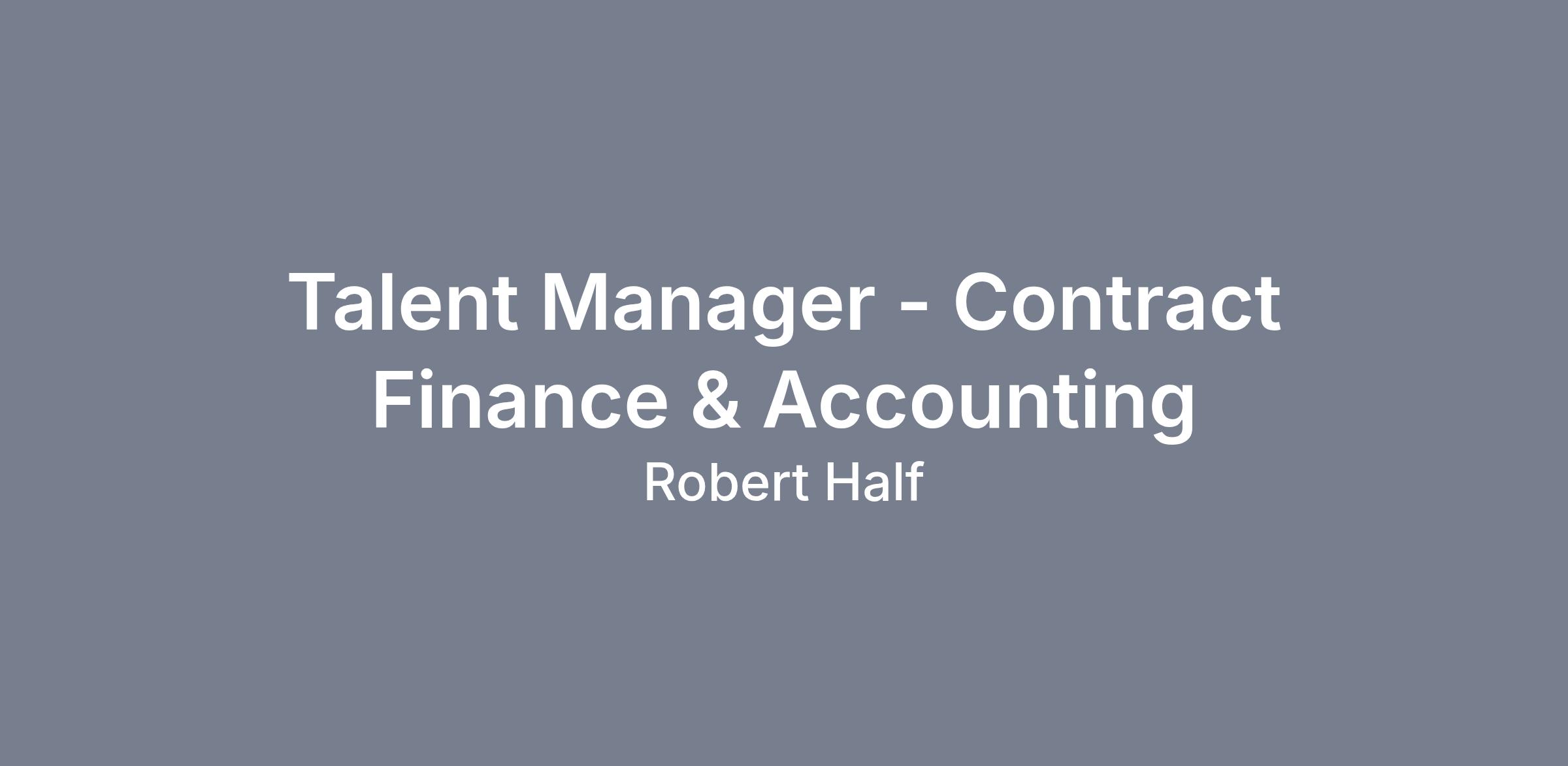 Talent Manager - Contract Finance & AccountingLOCATION