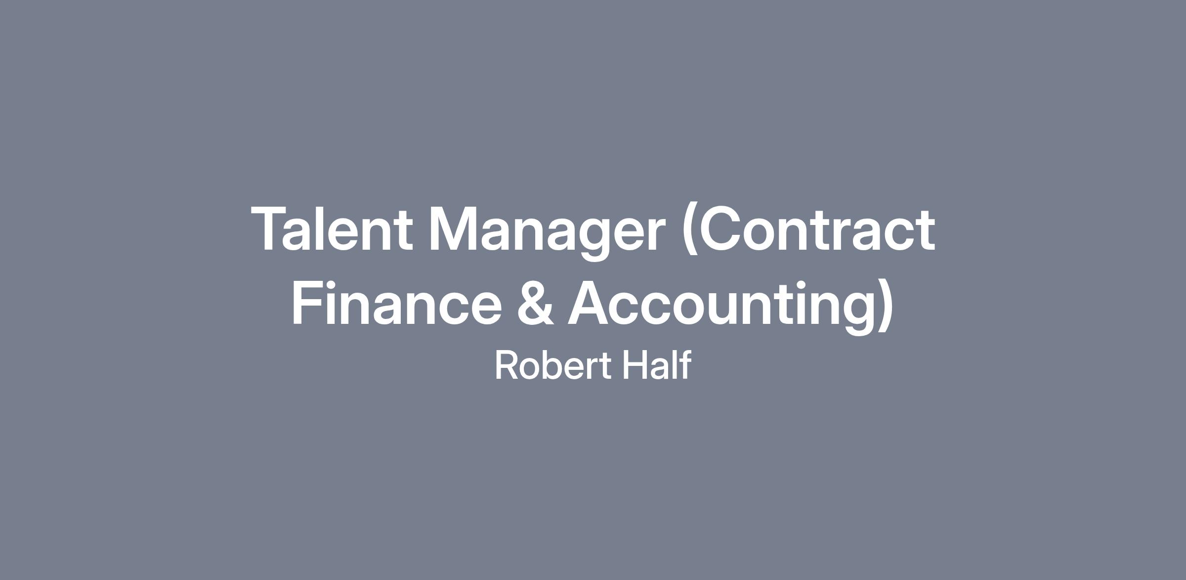 Talent Manager (Contract Finance & Accounting)LOCATION