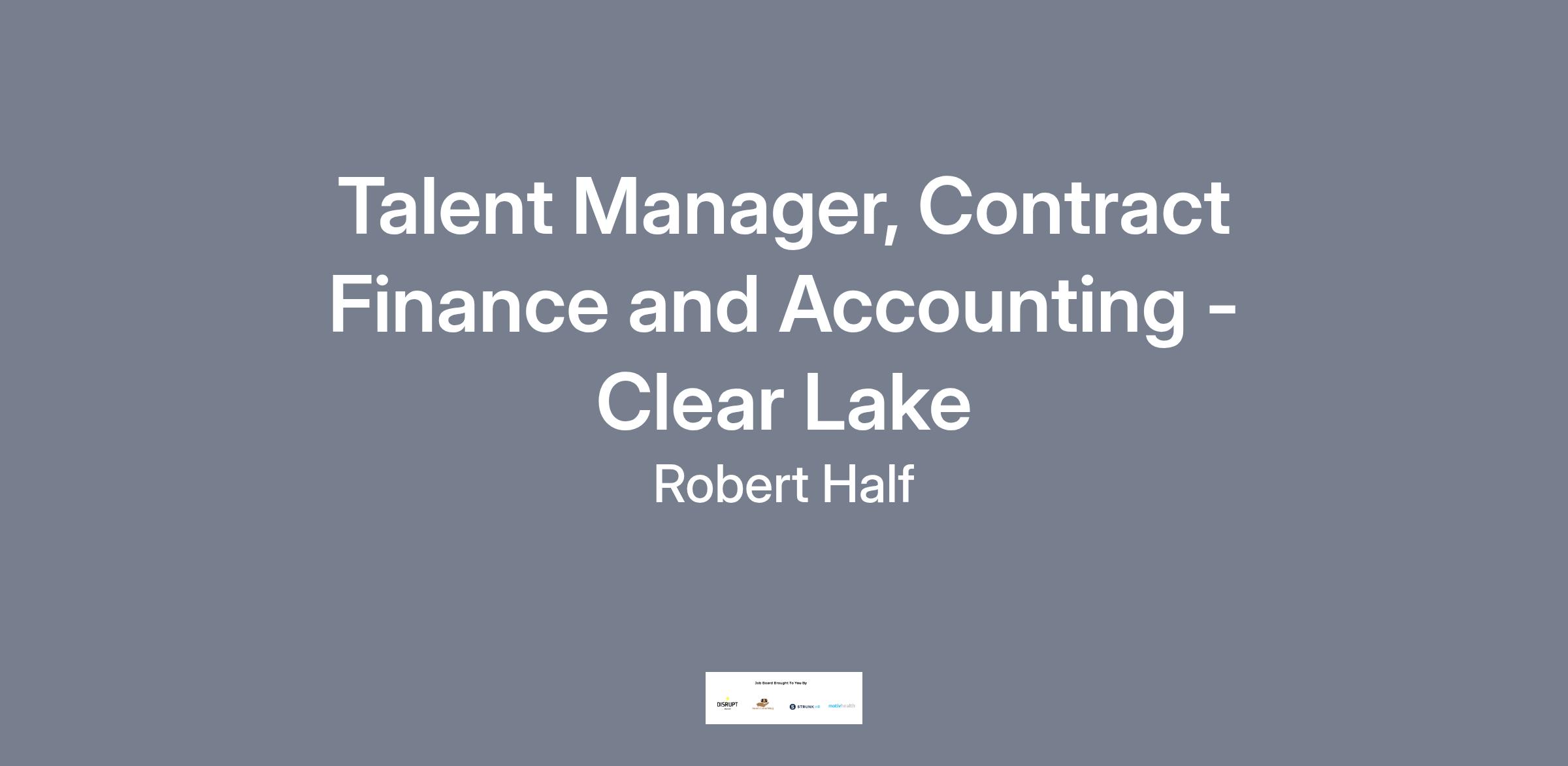 Talent Manager, Contract Finance and Accounting - Clear LakeLOCATION