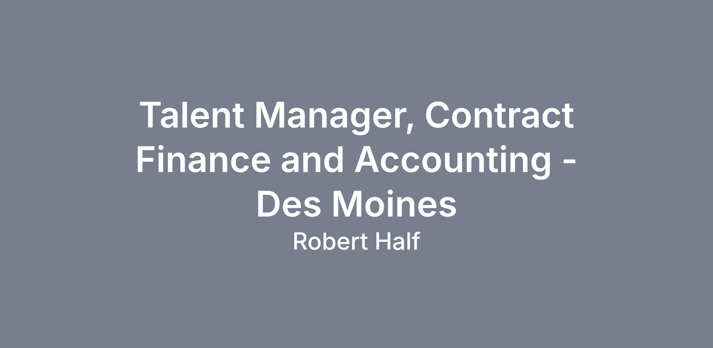 Talent Manager, Contract Finance and Accounting - Des MoinesLOCATION