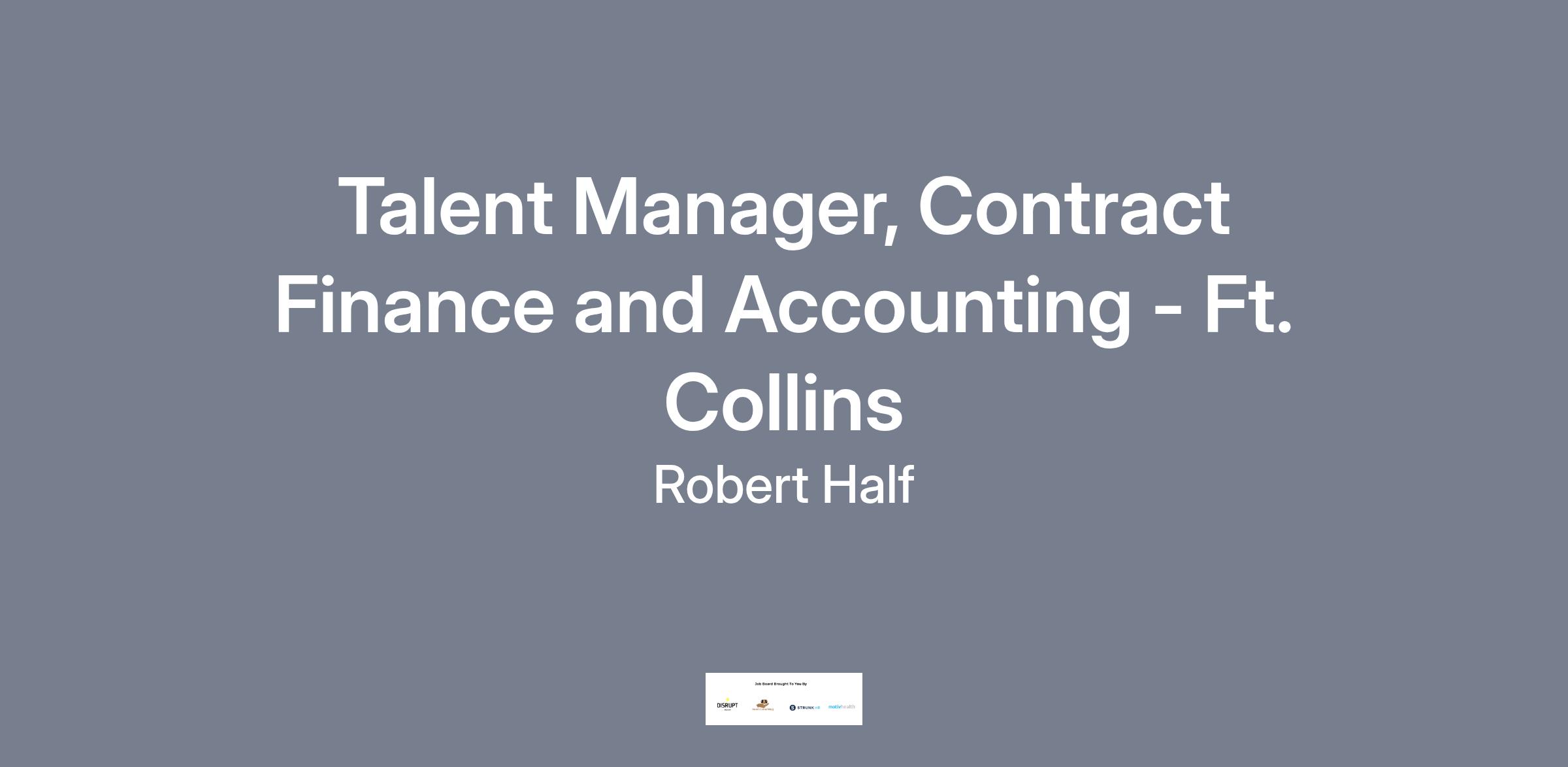Talent Manager, Contract Finance and Accounting - Ft. CollinsLOCATION