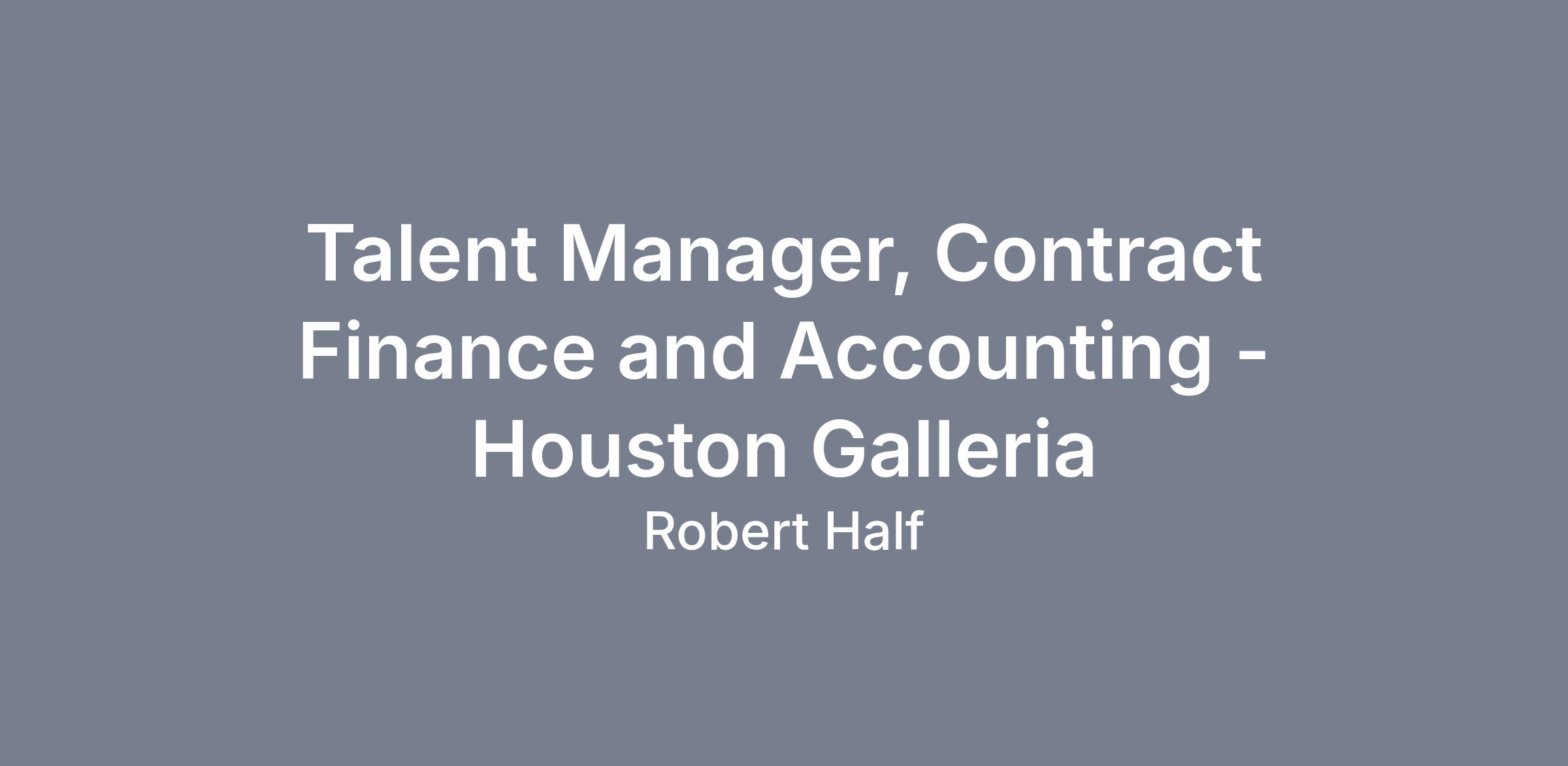 Talent Manager, Contract Finance and Accounting - Houston GalleriaLOCATION