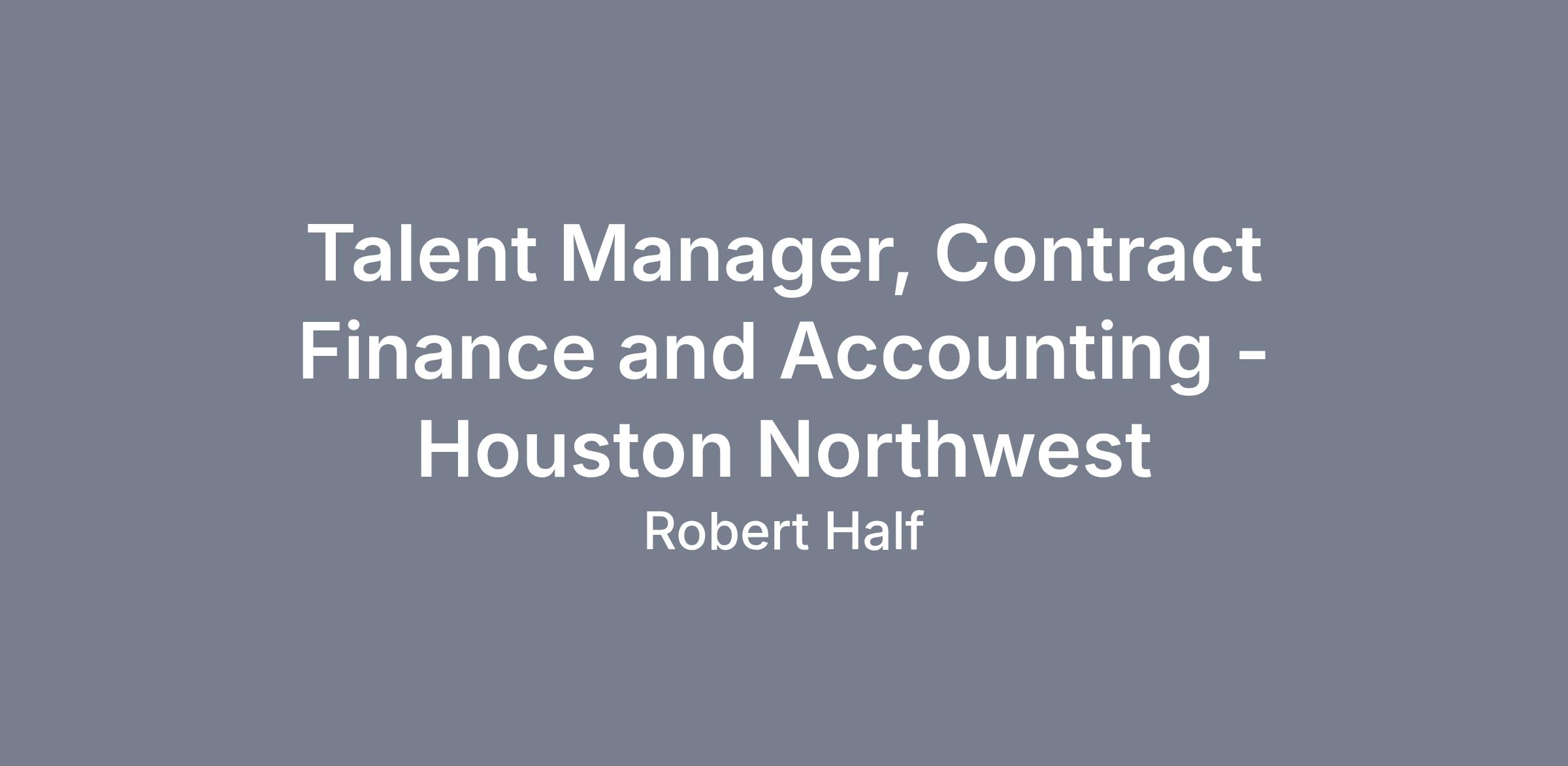 Talent Manager, Contract Finance and Accounting - Houston NorthwestLOCATION