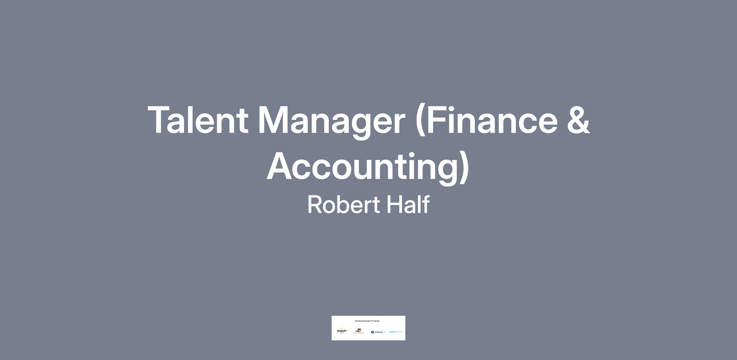Talent Manager (Finance & Accounting)LOCATION