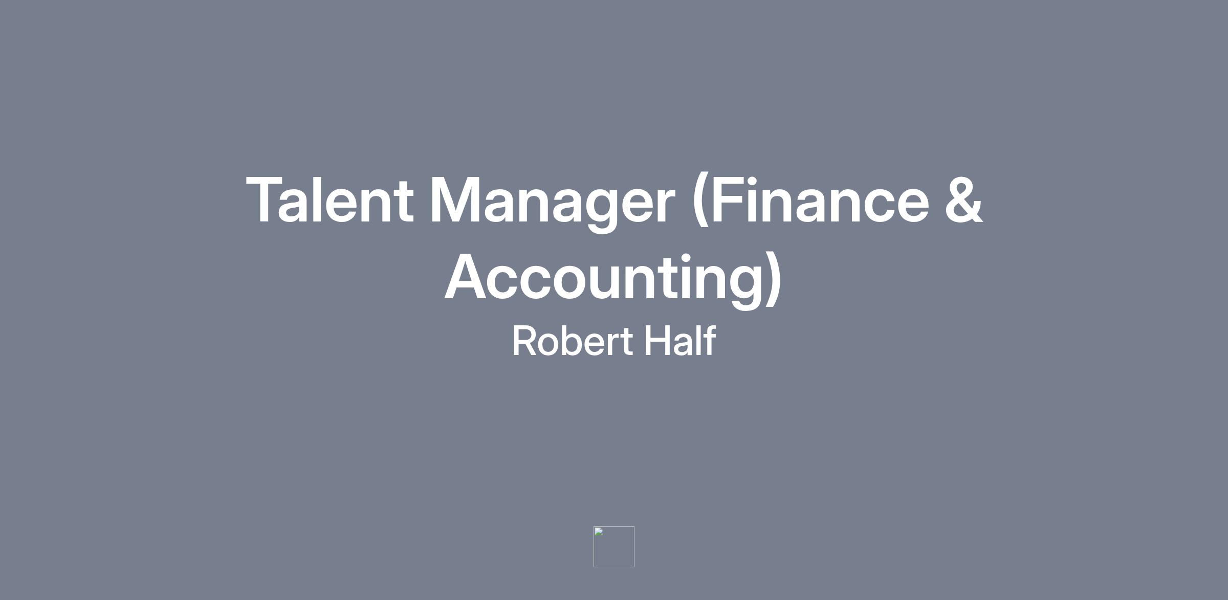 Talent Manager (Finance & Accounting)LOCATION