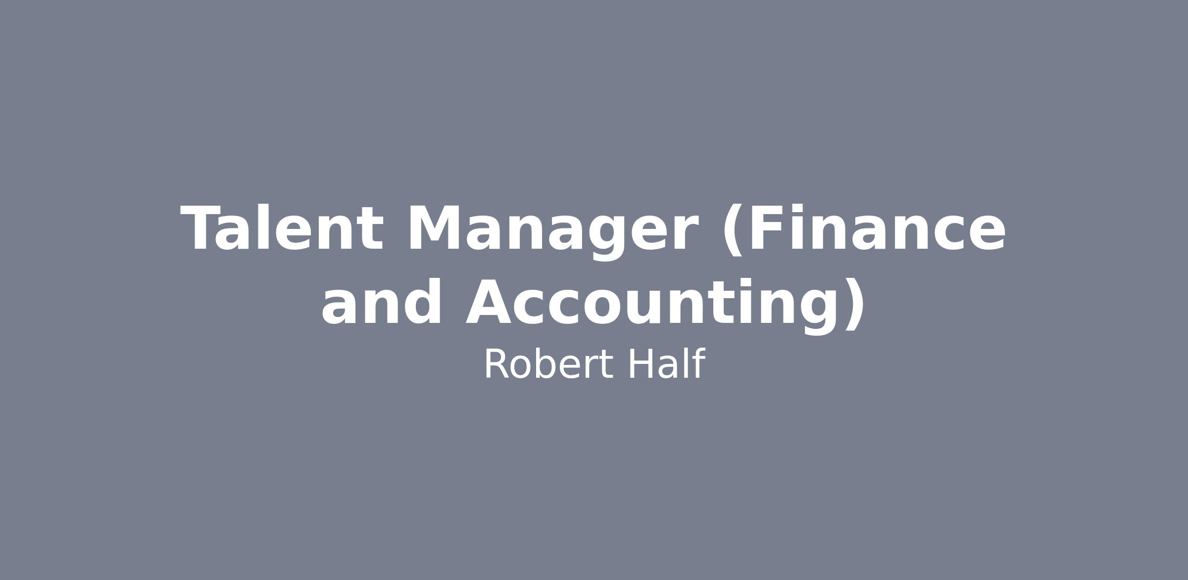 Talent Manager (Finance and Accounting)LOCATION