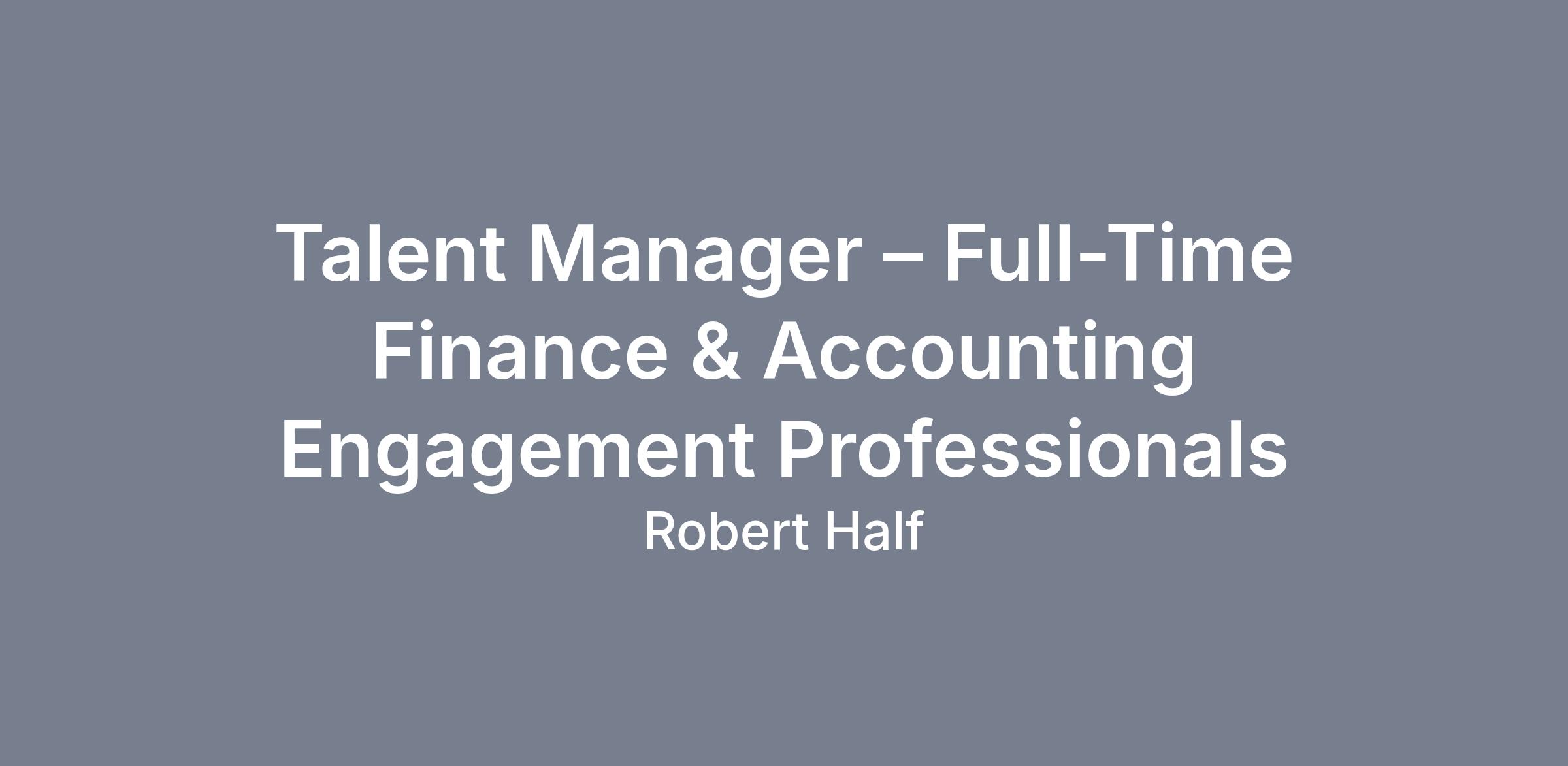 Talent Manager – Full-Time Finance & Accounting Engagement ProfessionalsLOCATION
