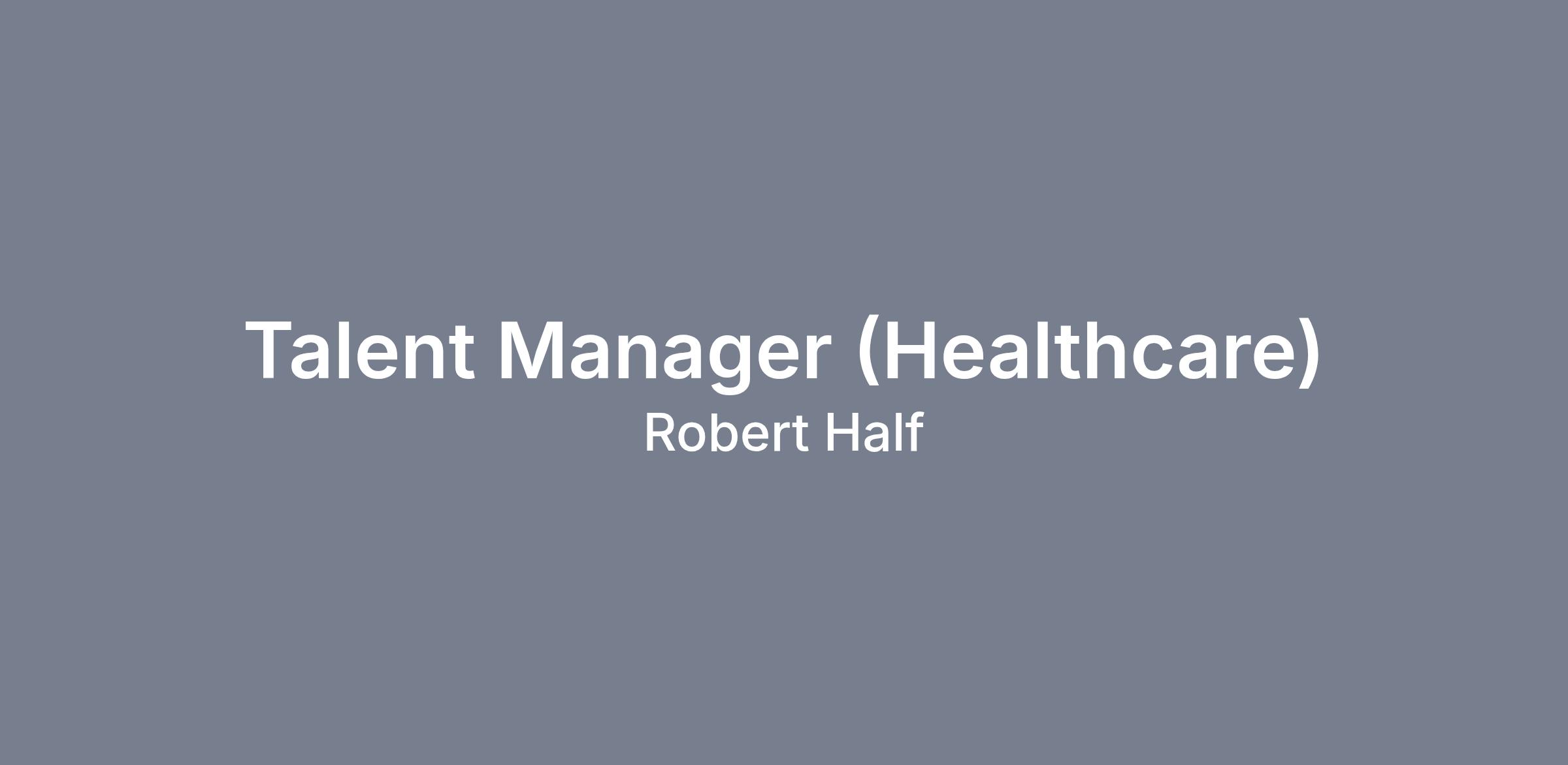 Talent Manager (Healthcare)LOCATION