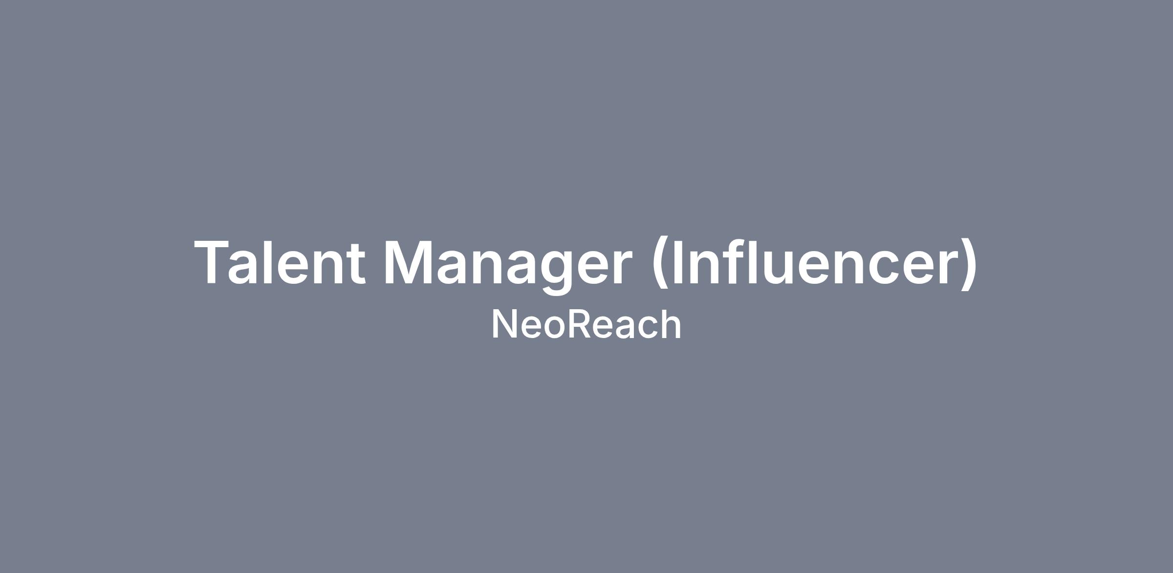 DescriptionThe Talent Manager is a vital role within NeoReach, responsible for discovering and managing top-tier influencers, ensuring their success in brand partnerships, and expanding their opportunities across multiple platforms. This individual will serve as the main point of contact for talent, negotiating brand deals, identifying new opportunities, and supporting the growth of their personal brands. Success in this role requires deep industry knowledge, a proactive attitude, and a passion for helping influencers thrive in a competitive market.