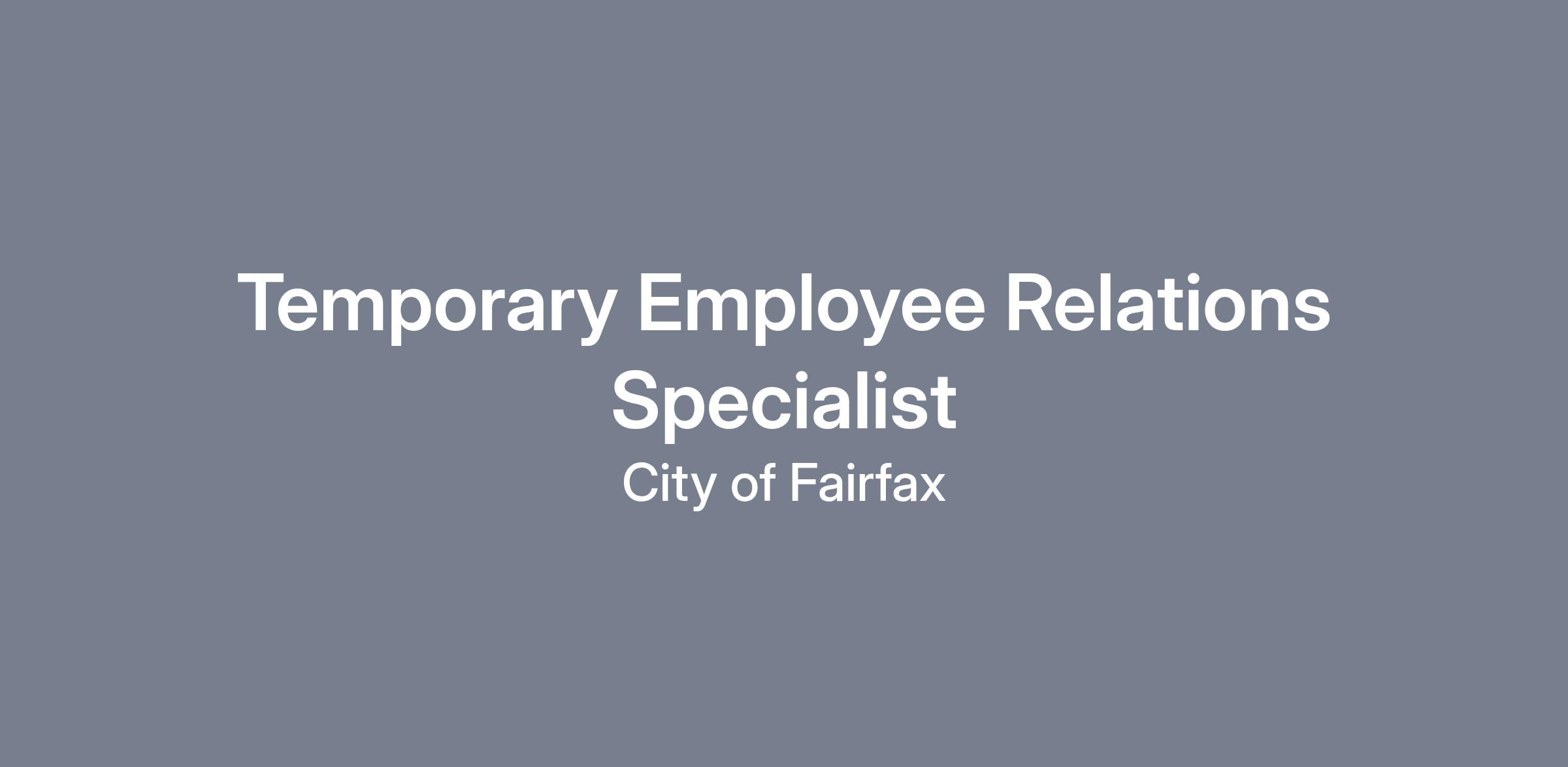 The City of Fairfax Human Resources Department is seeking a Temporary Employee Relations Specialist to provide hands-on support for employee relations matters. This is a full-time, temporary position (through June 30, 2026) with an anticipated hourly rate up to approximately $50 per hour, commensurate with experience.
