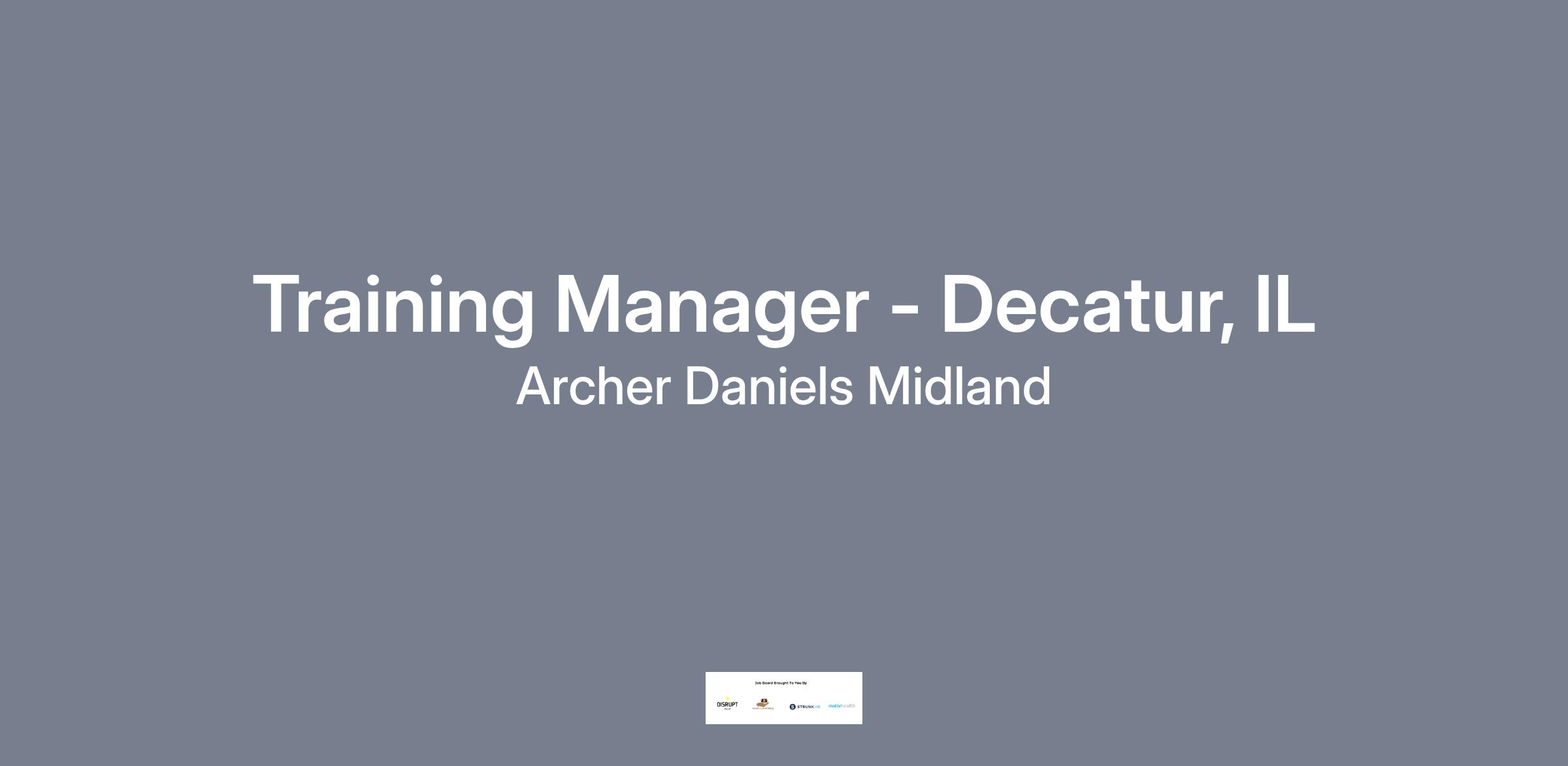 Training Manager – East Plant- Decatur, ILThis is an exempt level position.