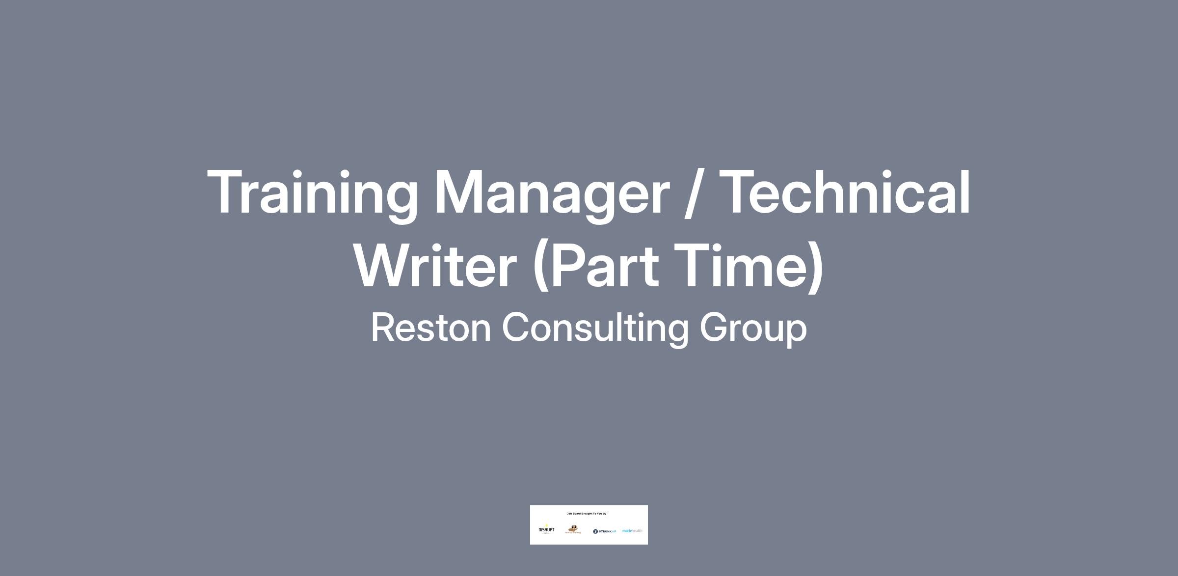 Training Manager / Technical Writer (Part Time) **PROPOSED EFFORT**