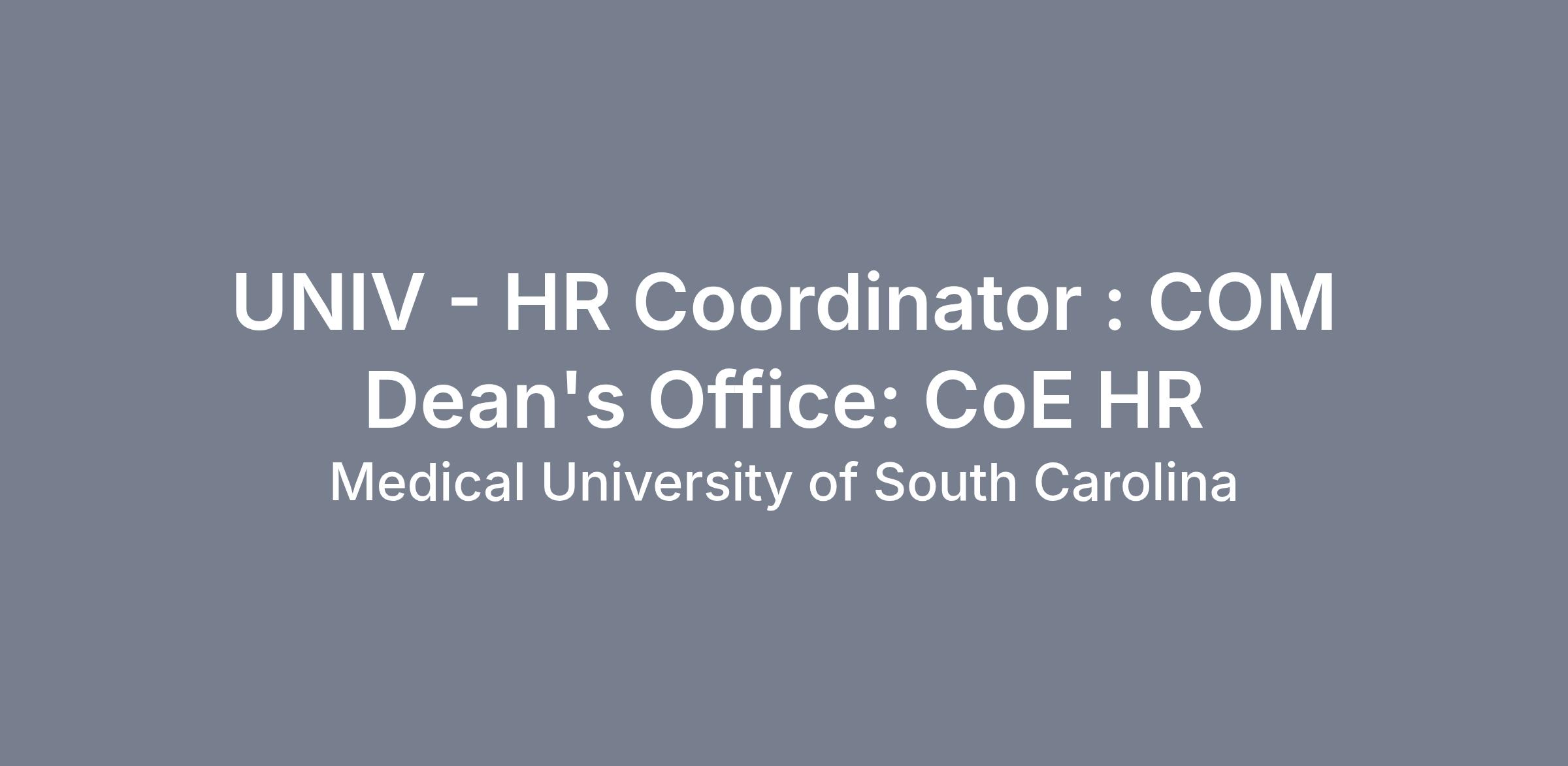 The College of Medicine Dean's Office is seeking an Administrative (Human Resources) Coordinator to support the operations of the Human Resources Center of Expertise (CoE-HR) in the College of Medicine (COM). Provide professional administrative support to assigned departments within the College of Medicine and serve as liaison between the COM departments and University Human Resources Management, Medical University of South Carolina Physicians (MUSCP) Human Resources, the Center for Global Health, Medical University Hospital Authority (MUHA) Human Resources, and other internal and external stakeholders as appropriate. Oversee and coordinate the departments' operating personnel systems, including hiring, termination, and employee relations. Facilitate all personnel functions for the department including Position/Employee Action Requests, posting and hiring processes, faculty appointments, promotion and tenure, credentialing, compliance training salary increases (reclass and in-band), and coordination of visa applications for incoming international faculty and staff.Entity