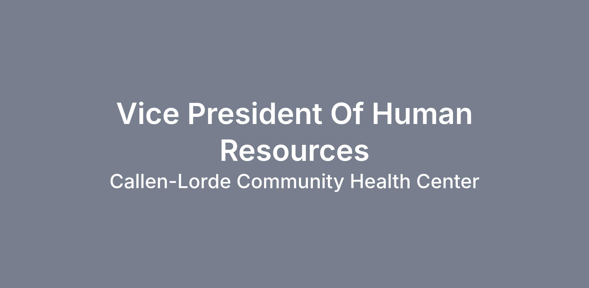 Callen-Lorde Community Health Center seeks a strategic and experienced Vice President of Human Resources (VPHR) to lead enterprise-wide human resources strategy and operations.
