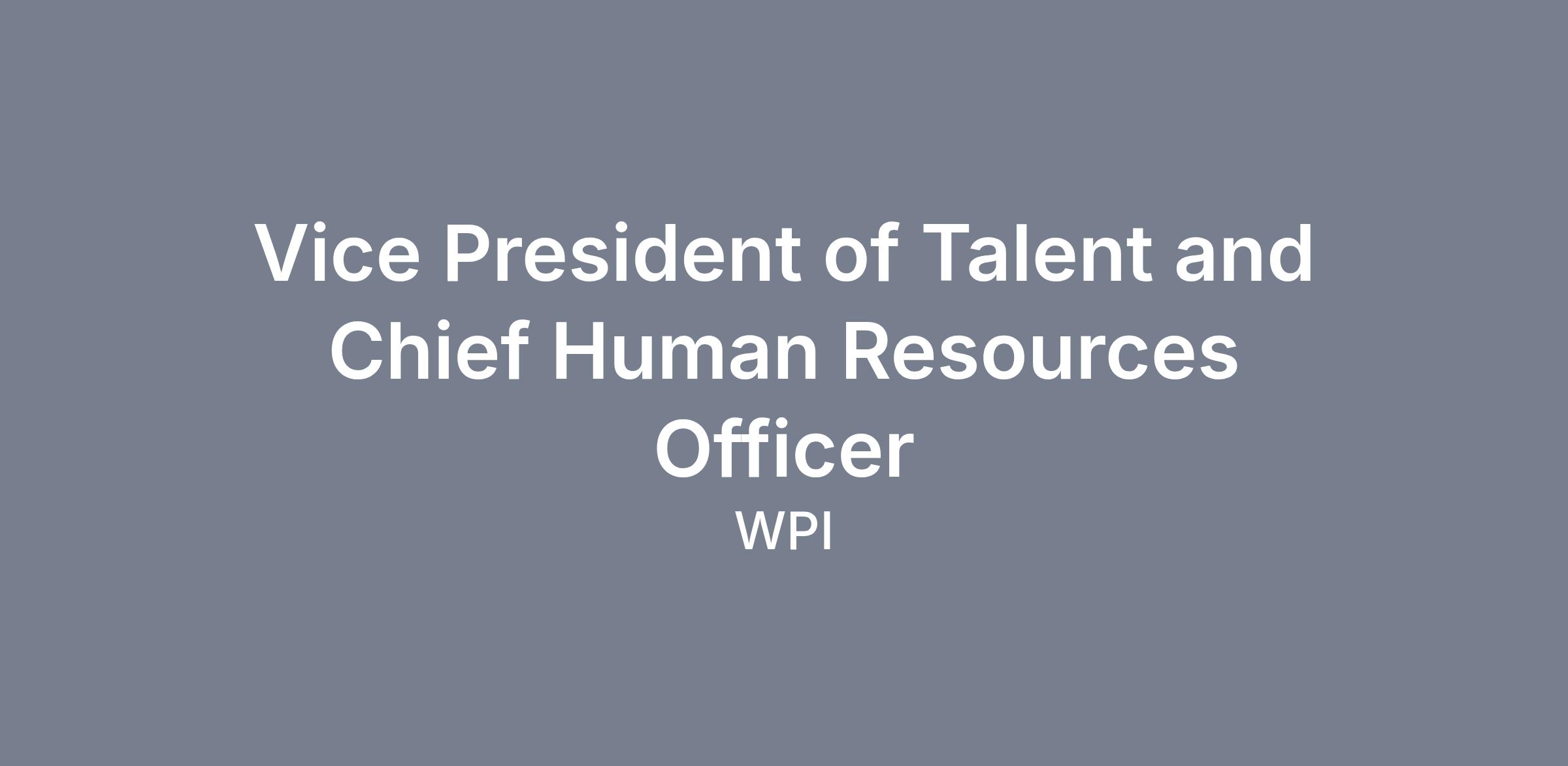Worcester Polytechnic Institute (WPI) invites applications for the Vice President of Talent and Chief Human Resources Officer (VP & CHRO). Reporting to the President and serving on the President’s Cabinet, the VP & CHRO provides strategic leadership and oversight of all human resources functions to support organizational effectiveness and a high-performing, people-centered culture.