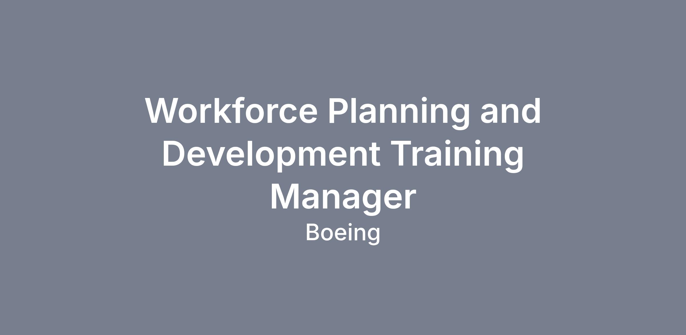 The Boeing CompanyThe Boeing Company’s BCA Production System Training organization is currently seeking a Workforce Planning and Development Training Manager to join our team at the ESRC in Everett, WA.